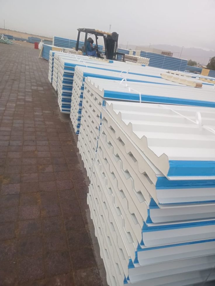 - توريد المواد: يتم توريد ألواح الساندوتش بانل من مصادر موثوقة وبمواصفات معتمدة.
