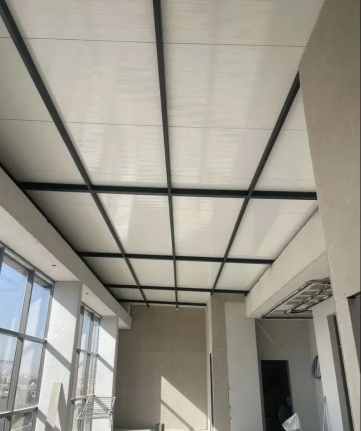 يُركب على الأسقف لتوفير حماية مثالية من أشعة الشمس المباشرة والأمطار، مع مقاومة عالية للتآكل.